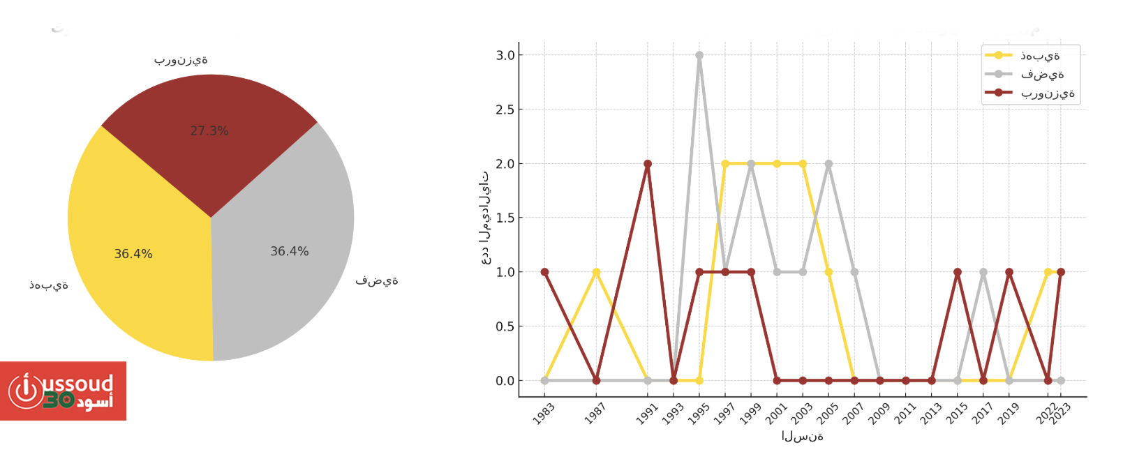 • المخطط الزمني الواضح لتطور حصيلة المغرب عبر جميع دورات بطولة العالم (1983 – 2023).