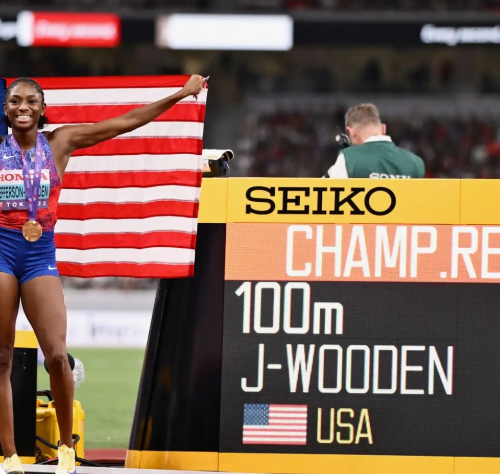 اختتمت الأمريكية ميليسا جيفرسون وودن موسمها المهيمن بفوزها بسباق 100 متر عدوا للسيدات في بطولة العالم لألعاب القوى اليوم الأحد، مسجلة رقما قياسيا للبطولة بلغ 10.61 ثانية.