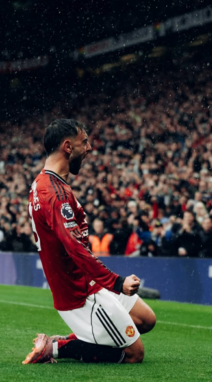 - برونو فرنانديز لاعب مانشستر يونايتد يحتفل بإحرازه الهدف الأول لفريقه في شباك تشيلسي