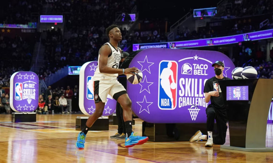 • أليكس أنتيتوكونمبو في محاولة للتصويب على هامش دوري كرة السلة الأمريكي للمحترفين