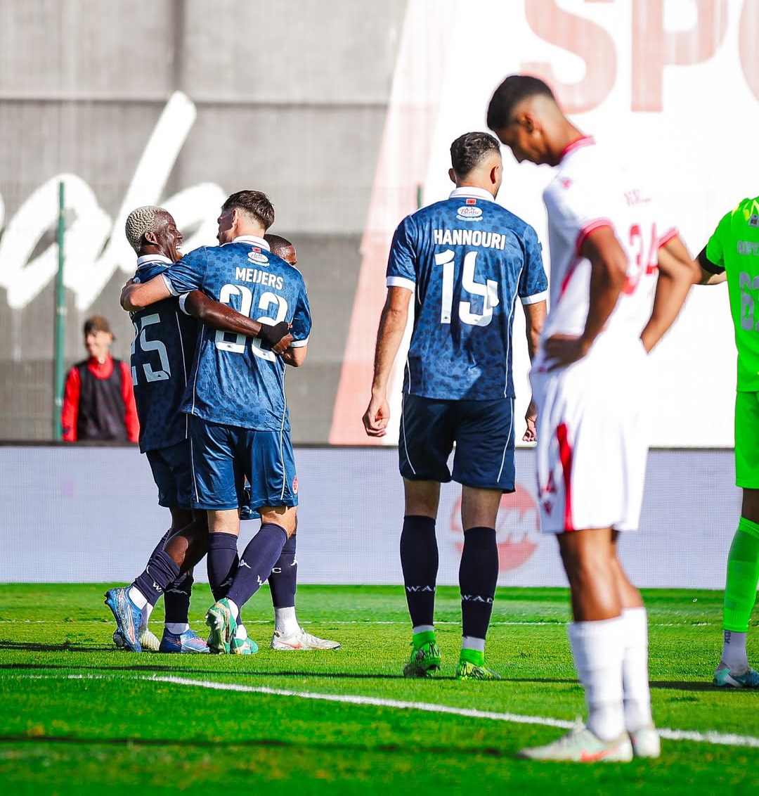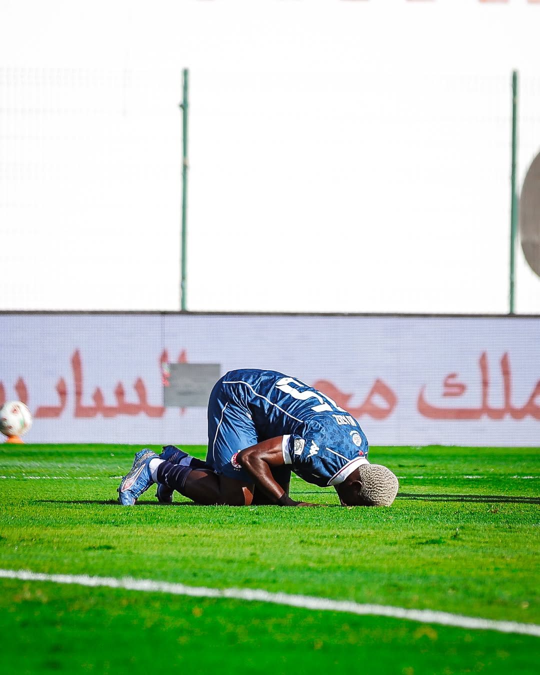 - ستيفان عزيز كي بعد تسجيله الهدف الأول للوداد أمام حسنية أكادير