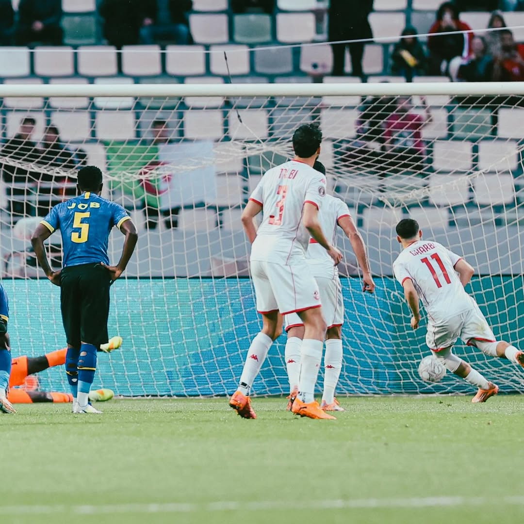 ونجح منتخب تونس في افتتاح التسجيل عند الدقيقة 43، بعدما ترجم إسماعيل الغربي ركلة جزاء بنجاح، واضعًا نسور قرطاج في المقدمة قبل نهاية الشوط الأول.