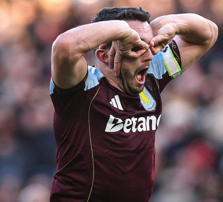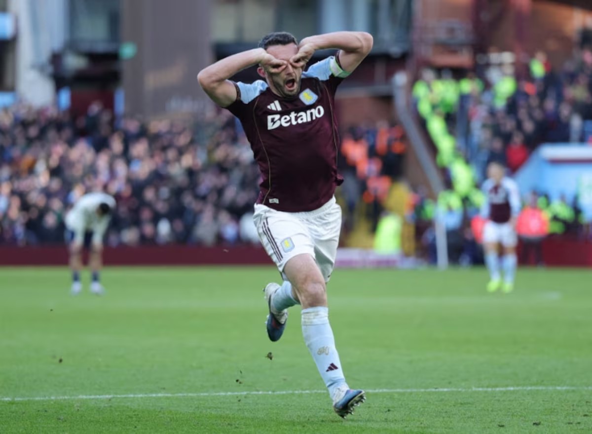 جون مكغين يحتفل بتسجيل الهدف الثالث لأستون فيلا أمام نوتنعهام فورست