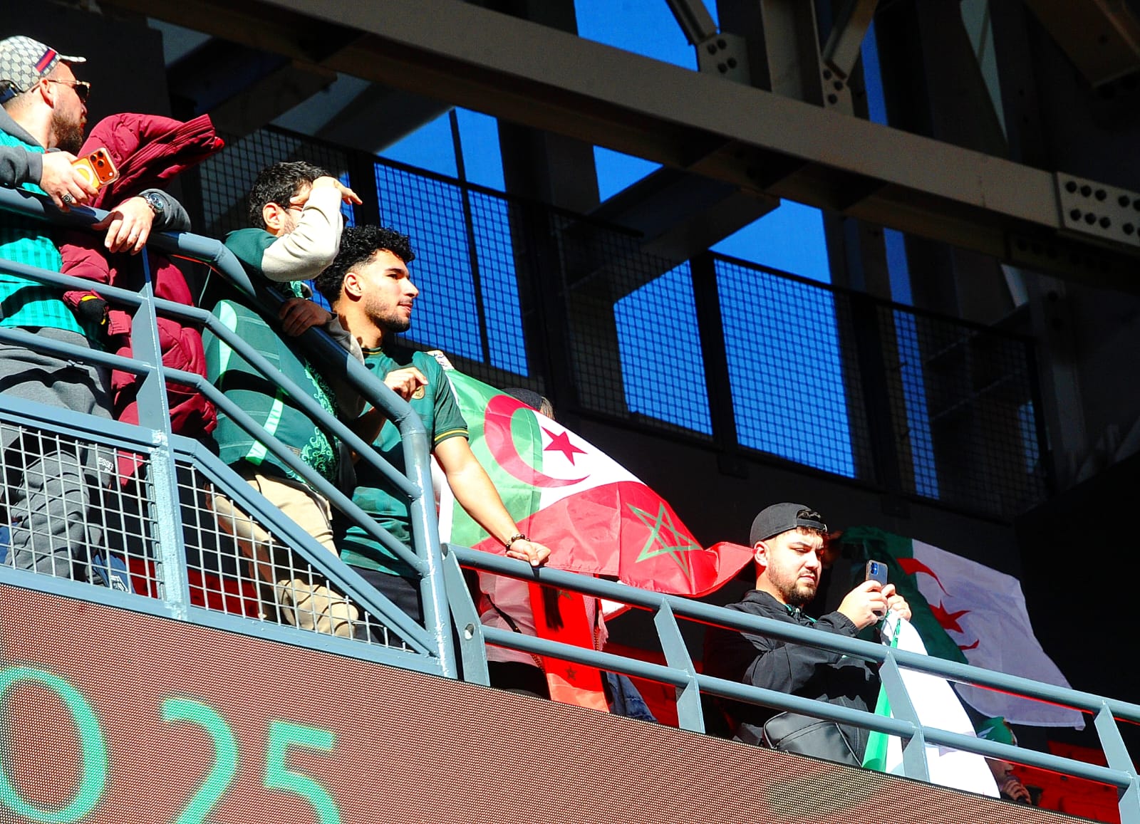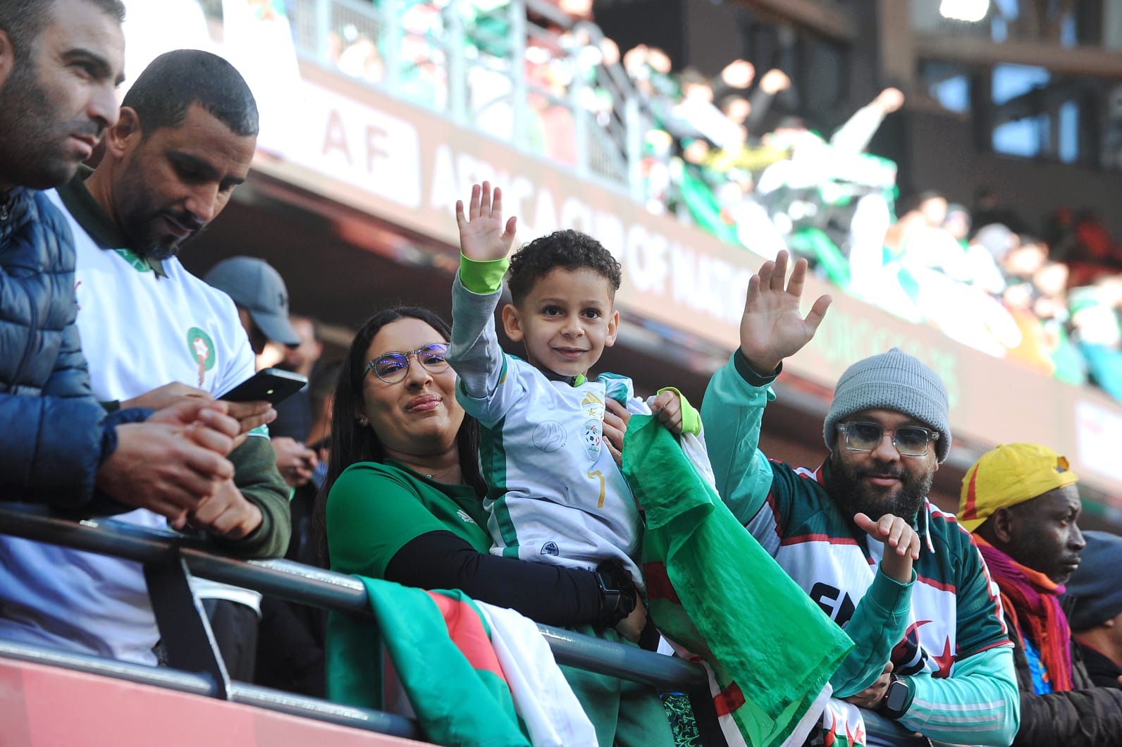 وشهدت مباراة الجزائر والكونغو الديمقراطية حضورًا لافتًا في المدرجات، يتقدمهم أسطورة الكرة الفرنسية زين الدين زيدان، الذي حرص على التواجد بملعب مولاي الحسن لمساندة محاربي الصحراء، إلى جانب المشجع الكونغولي الشهير لومومبا المعروف بتشجيعه المتواصل لمنتخب بلاده.