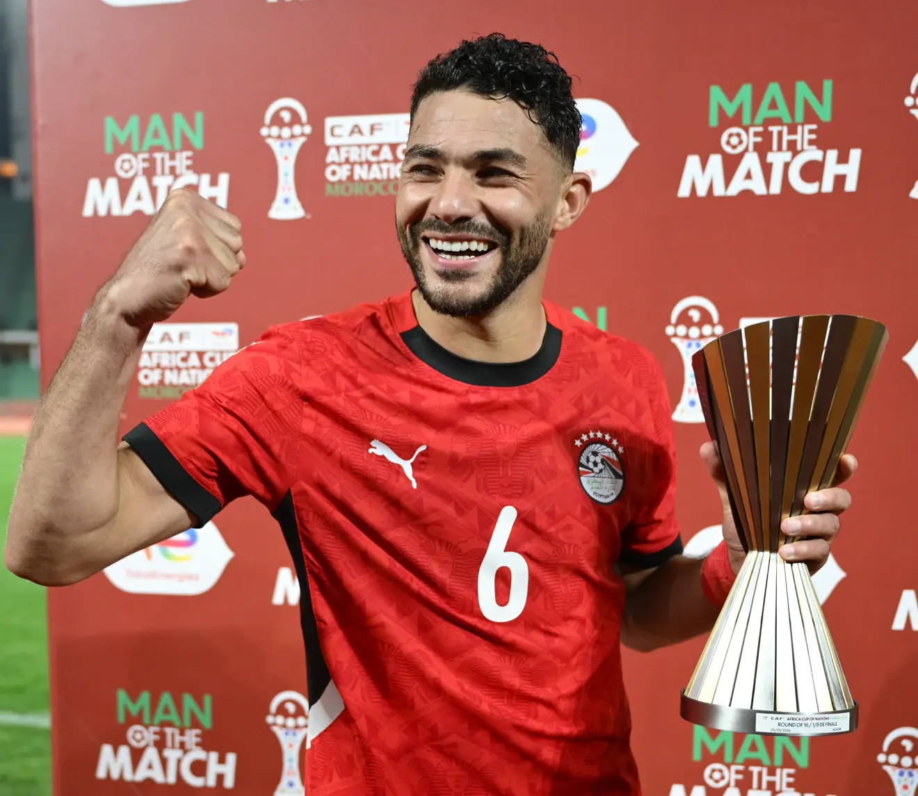 جائزة أفضل لاعب في المباراة (Player of the Match) توتال إنيرجيز، بعد قيادته “الفراعنة” لفوز شاق على بنين بنتيجة (3-1) بعد التمديد، في دور الـ16 من كأس أمم إفريقيا، توتال إنيرجيز المغرب 2025.