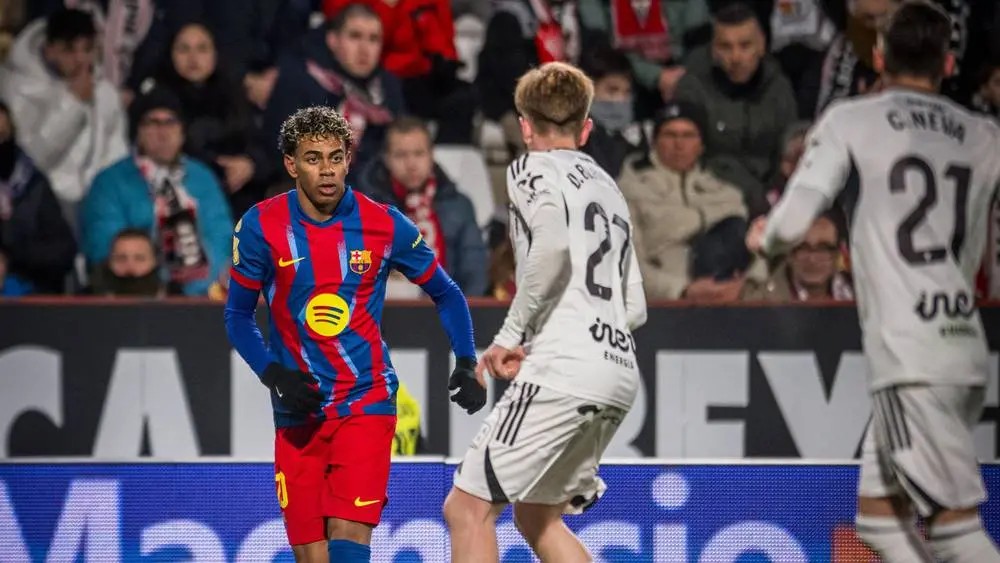 ودخل برشلونة المباراة بتركيز واضح، وتمكن من فرض أفضليته النسبية خلال الشوط الأول، حيث تُرجمت السيطرة إلى هدف أول وقّعه لامين يامال في الدقيقة 39، مؤكِّدًا مرة أخرى المكانة المتنامية للجوهرة الشابة داخل منظومة الفريق، وهو ما أشادت به صحف إسبانية اعتبرت اللاعب «أكثر عناصر الخط الأمامي جرأة وتأثيرًا».